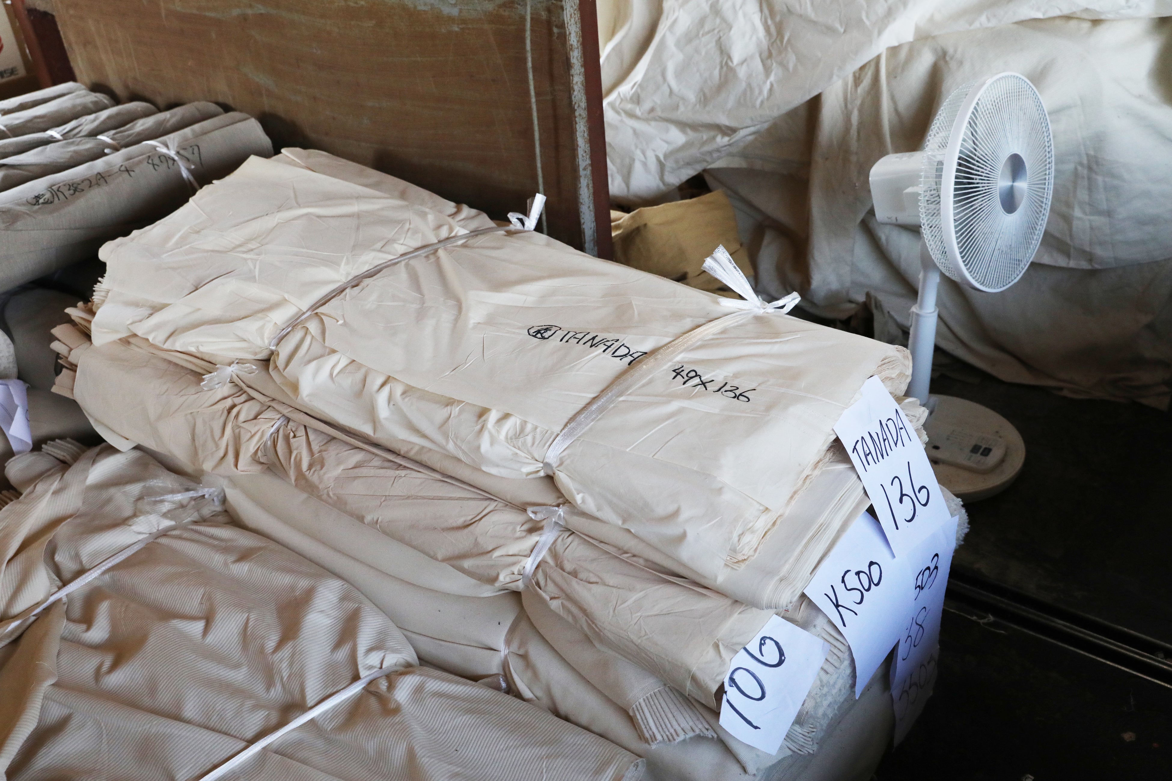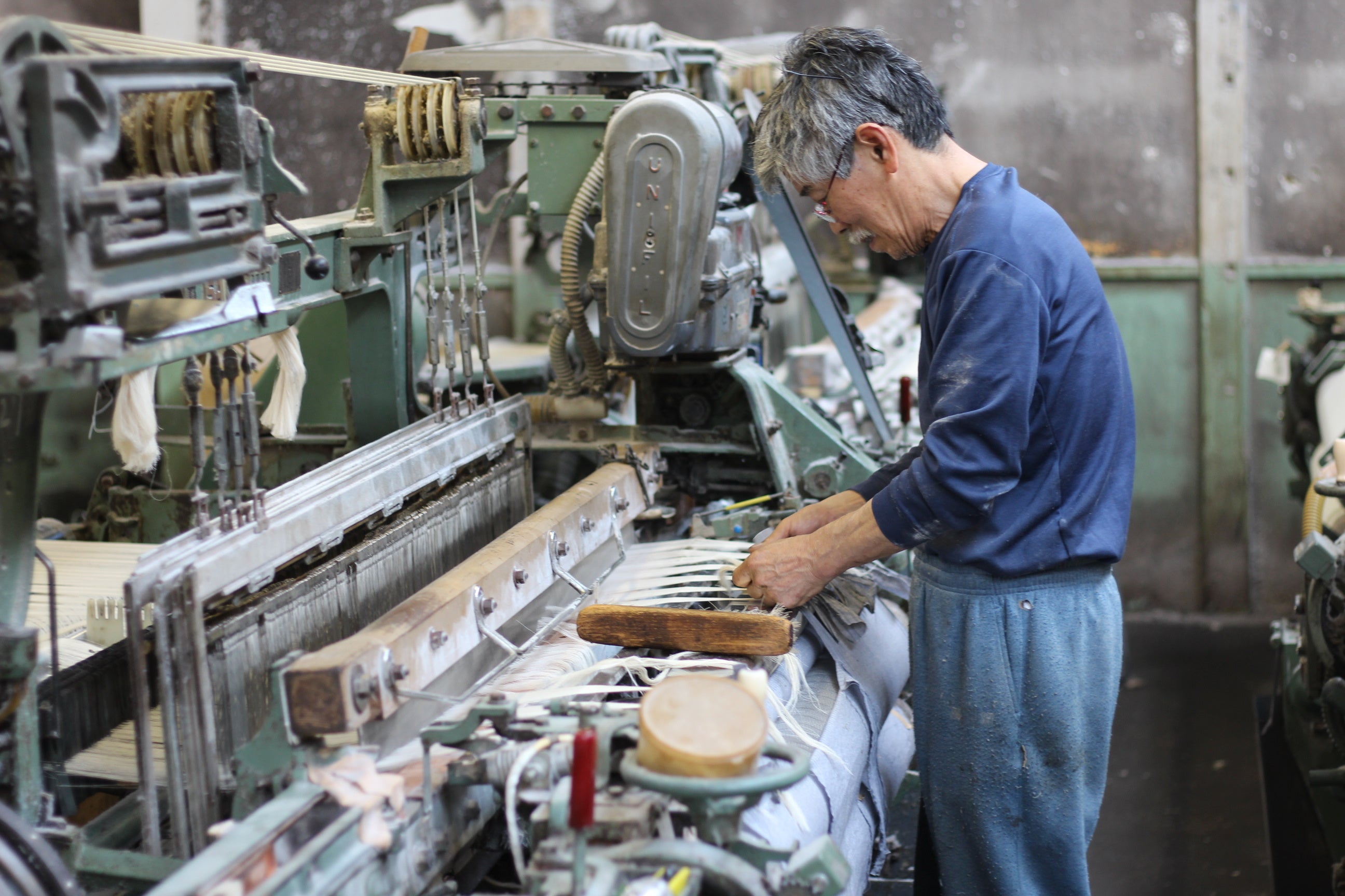 「遠州織物」は世界的なアパレル高級シャツ生地として業界の中では古くから知られた生地。通常の20~30倍の時間をかけゆっくりと織り上げるHUISの生地は、特別な風合いと機能性を持つ。