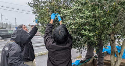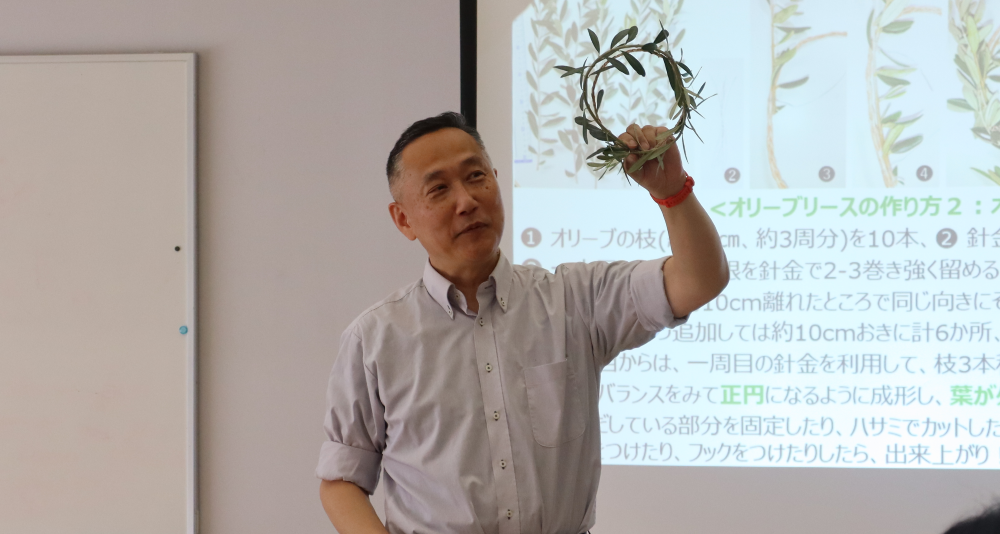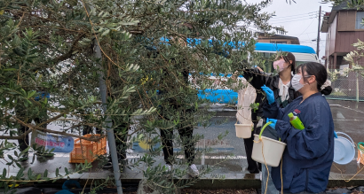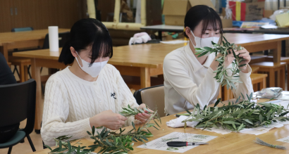 オリーブクラウンを作る域学共創プロジェクトの学生