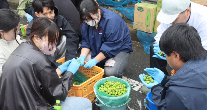 域学共創プロジェクトのひとつである「オリーブ産地化応援プロジェクト」(担当教員:光本篤史、戸田傑、石田ゆかり)の一環として、10月15日に道の駅 みのりの郷東金でオリーブの収穫を行いました。履修学生をはじめ、韓国からの交換留学生などの有志学生を含む5学部の学生が参加。さらに、市民未来大学の受講生、道の駅みのりの郷東金の職員、東金市役所農政課の職員など、約60人が協力しました。