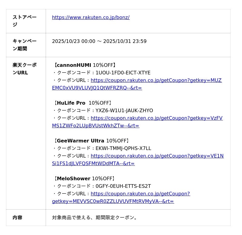 株式会社Gloture (本社:東京都港区、代表取締役:希咲 君一) は、この度、Gloture公式商品取り扱いショップ「BONZ楽天市場店」にて、2025年10月23日より季節家電を対象とした10%OFFクーポンキャンペーンを期間限定で開催いたします。