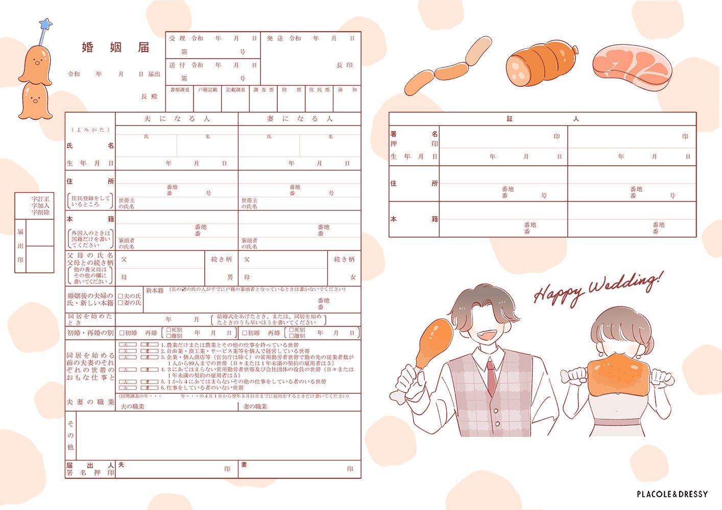 「いい肉の日」を記念した元気なデザイン!お肉大好き!食べるの大好き!なおふたりに◎ふたりらしい“おいしい記念日”を彩る婚姻届です。
