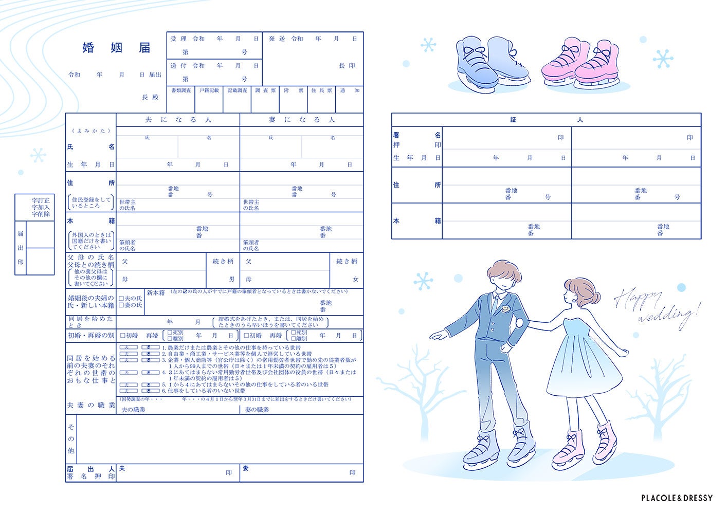 色違いのスケート靴で滑るカップルがかわいらしいデザイン。寄り添い、支え合いながら進む姿に、 これから共に歩む人生の姿が重なります。
