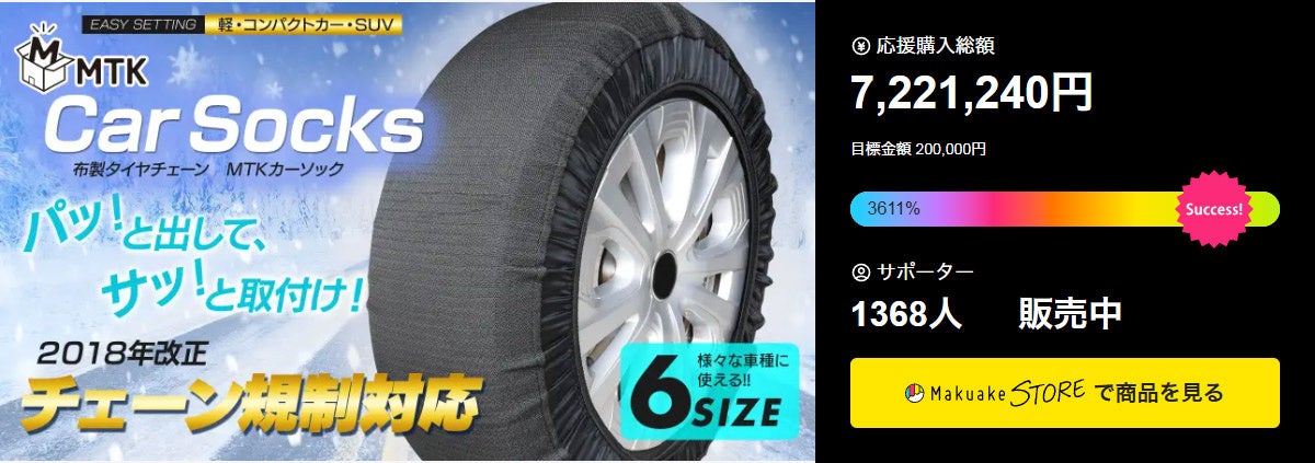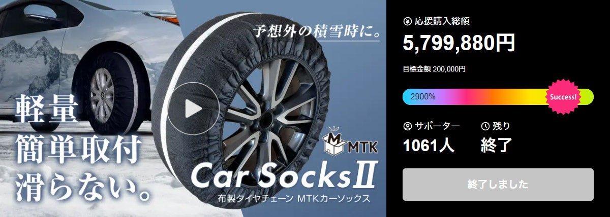 冬の突然の積雪や凍結による立ち往生は、雪に慣れていない地域ほど大きな不安となります。そんな中で注目されているのが、誰でも素早く装着できる布製タイヤチェーンです。前回Makuakeで2899%を達成した「MTKカーソックス」シリーズが、今季さらなる神化(しんか)を遂げて登場しました。
