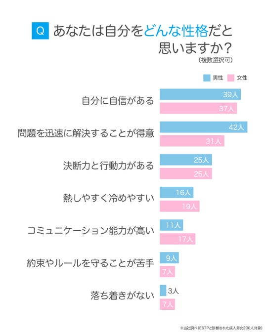 調査対象:MBTIテストで「ESTP」と診断された成人男性・成人女性