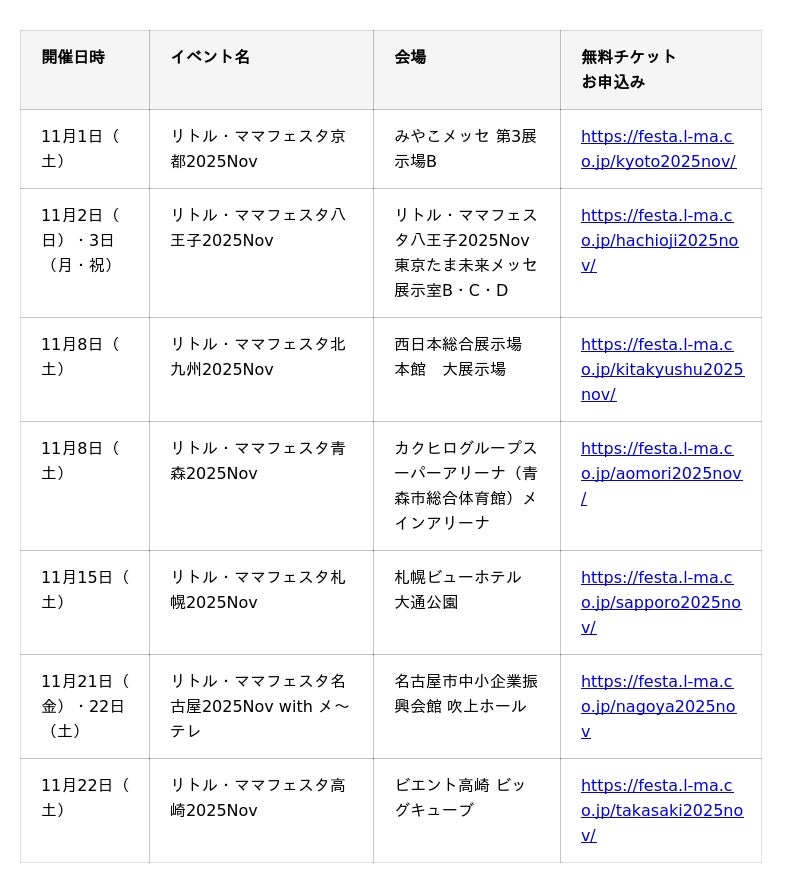 各フェスタの開催情報はこちら:https://festa.l-ma.co.jp/