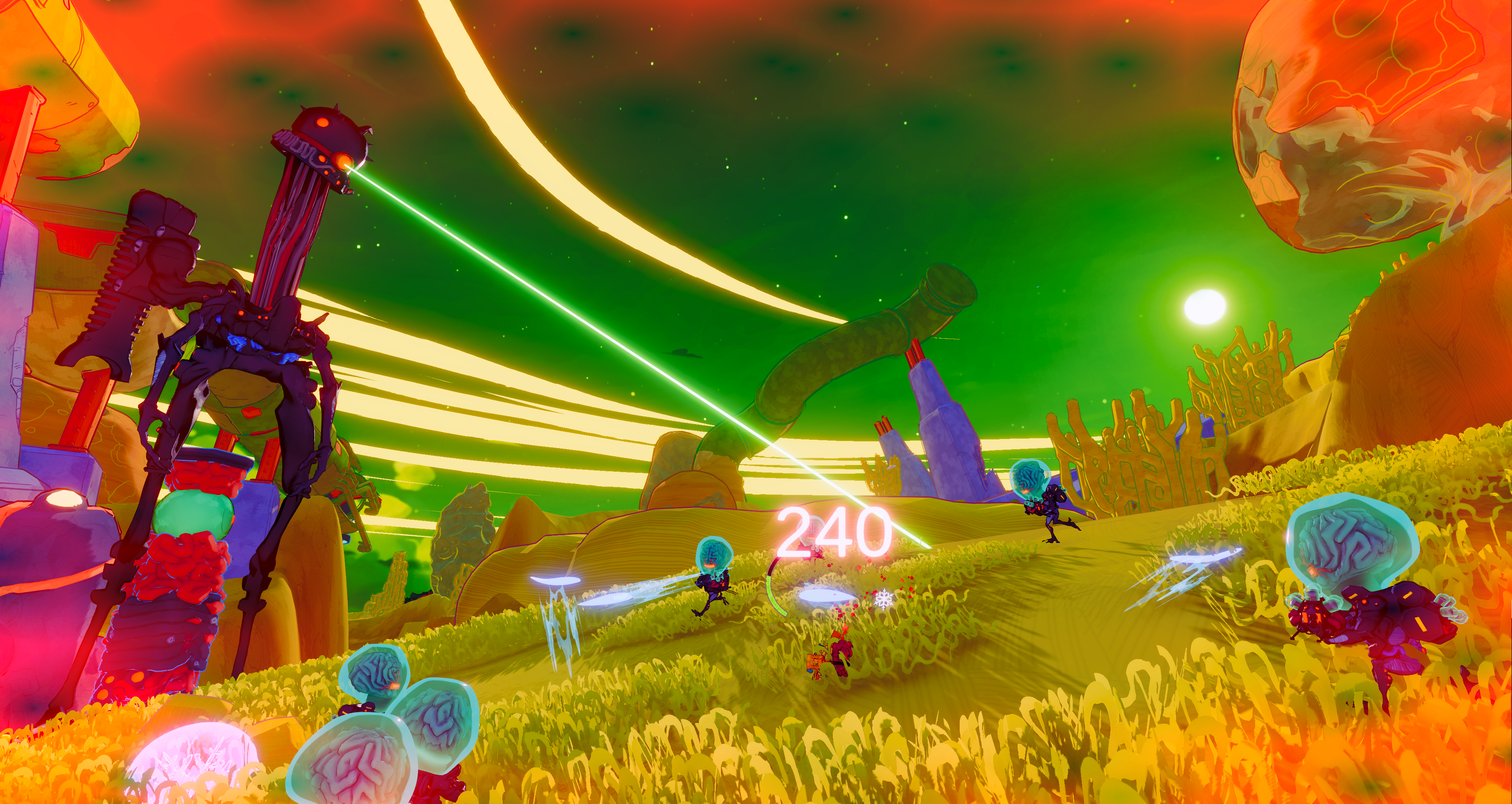 スピーディで容赦ない戦闘:『SWAPMEAT』では、従来のローグライトにはない即興性が求められる。ドロップしたものを活かし、予測不能な戦況で生き延びろ。奇怪なエイリアンが波のように押し寄せる中、回避・射撃・スワップを駆使して混沌の戦場を駆け抜け、制限時間内に目標を達成し「Meat Core」を回収せよ。