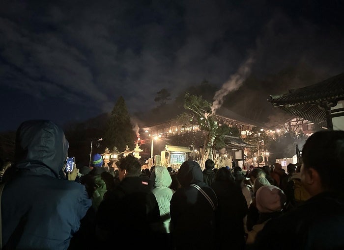 ならわい for studentsの仲間と一緒に眺めた修二会のお松明(城戸口さん提供)