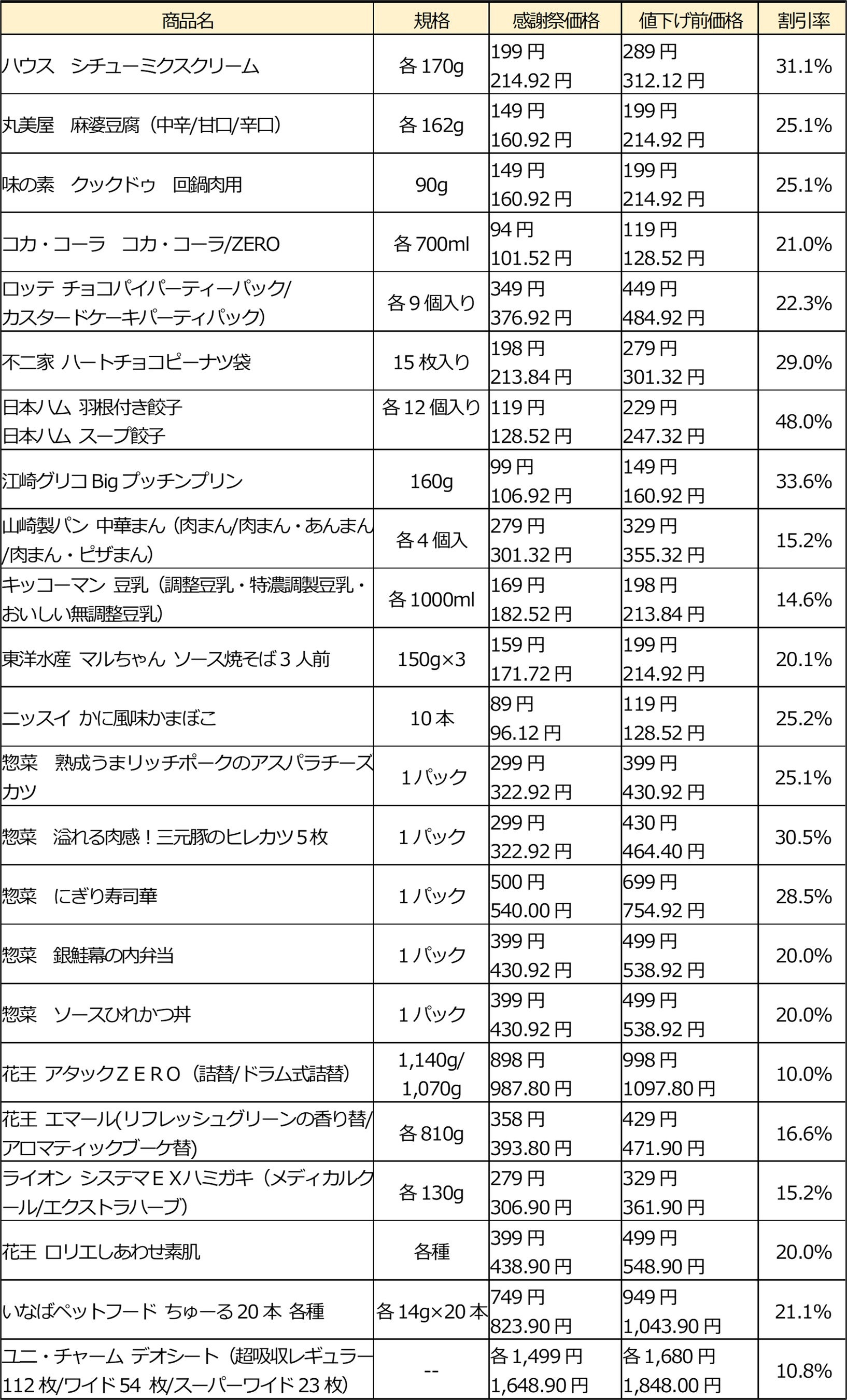 【西友の主な値下げ商品】