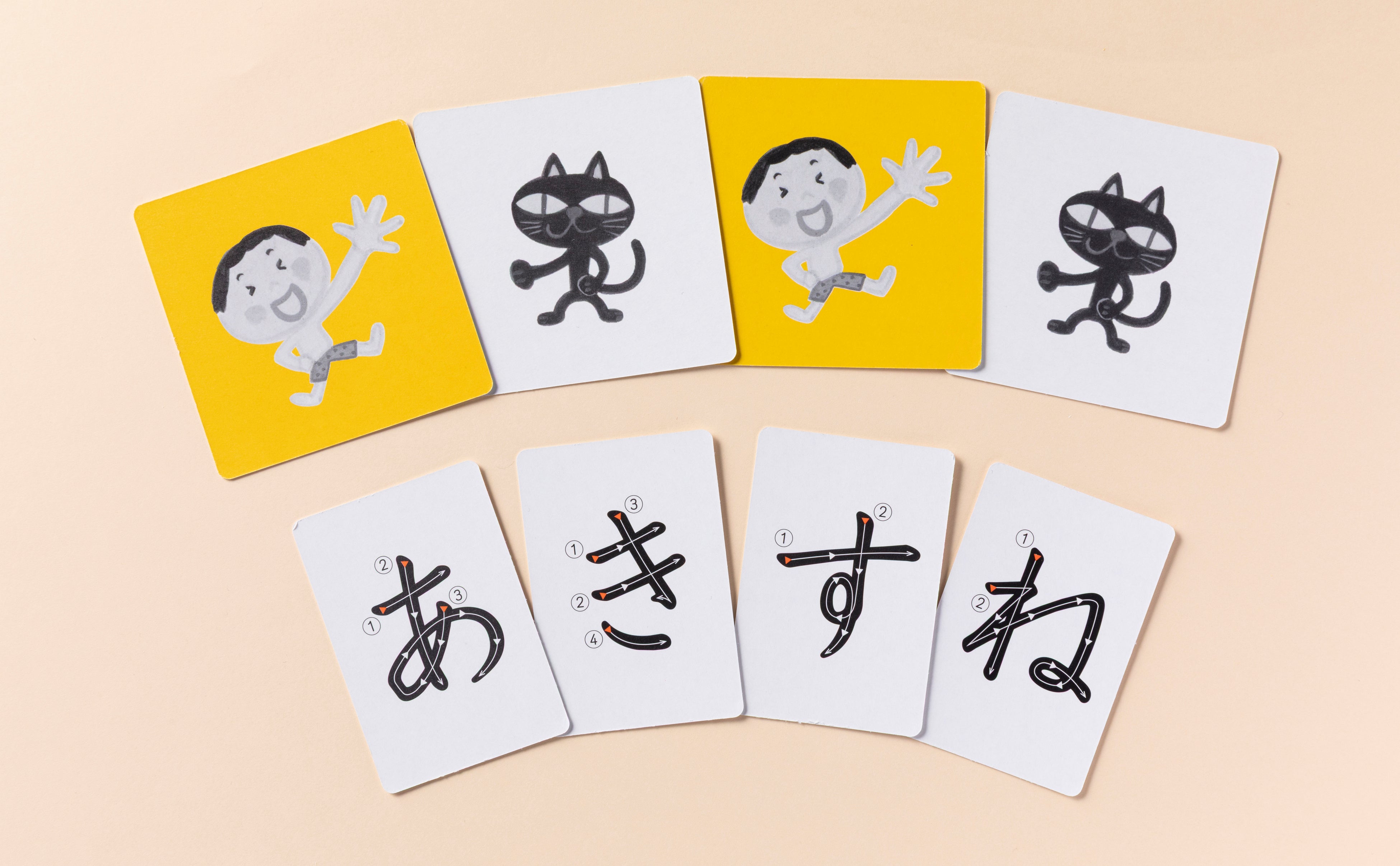 読み札の裏面は、ひらがなの書き順がのっていて、文字の練習ができます。