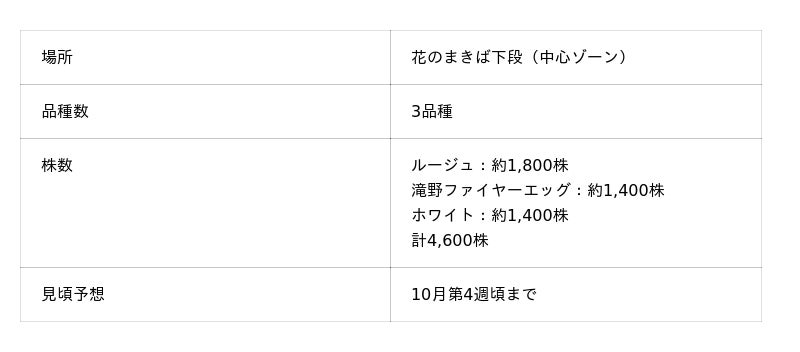 カントリーガーデン紅葉見頃のコキアのほか、青と白のボーダーデザインの「サルビア」も引き続き見頃!上段から下段に向かっての写真撮影がオススメです。