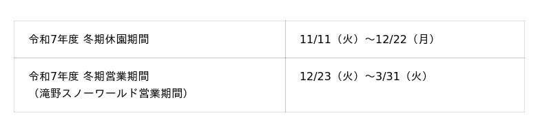 冬期の営業の準備のため11/11より閉園期間に入ります。