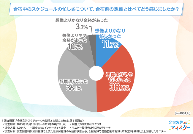 今回の調査で、合宿免許期間中のスケジュールについて、参加者の実感が明らかになりました。