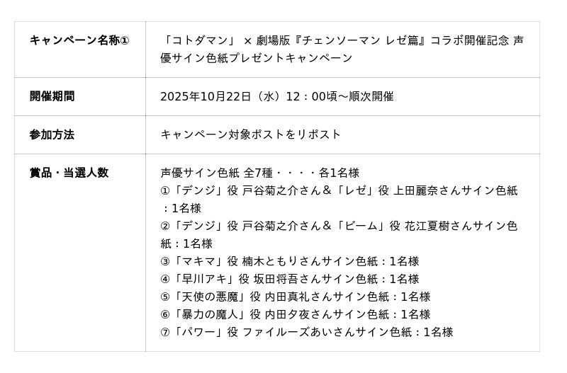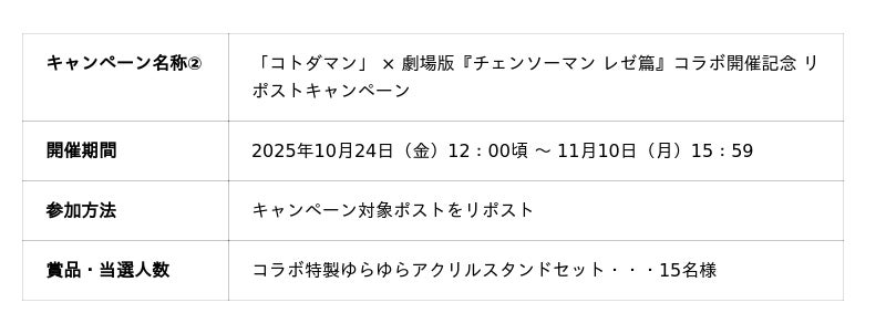 ・「コトダマン」 × 劇場版『チェンソーマン レゼ篇』コラボ記念スペシャルPV:https://youtu.be/kHW3-gO6ZbM