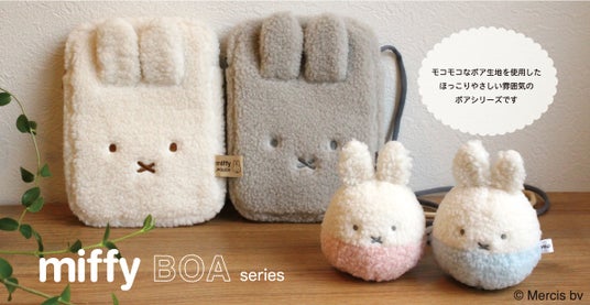 「ミッフィー ボアシリーズ」は、ぬいぐるみ起き上がりこぼし「ぬいコロン」と、「.POUCH(どっとポーチ)ショルダーショート」で同時展開。
