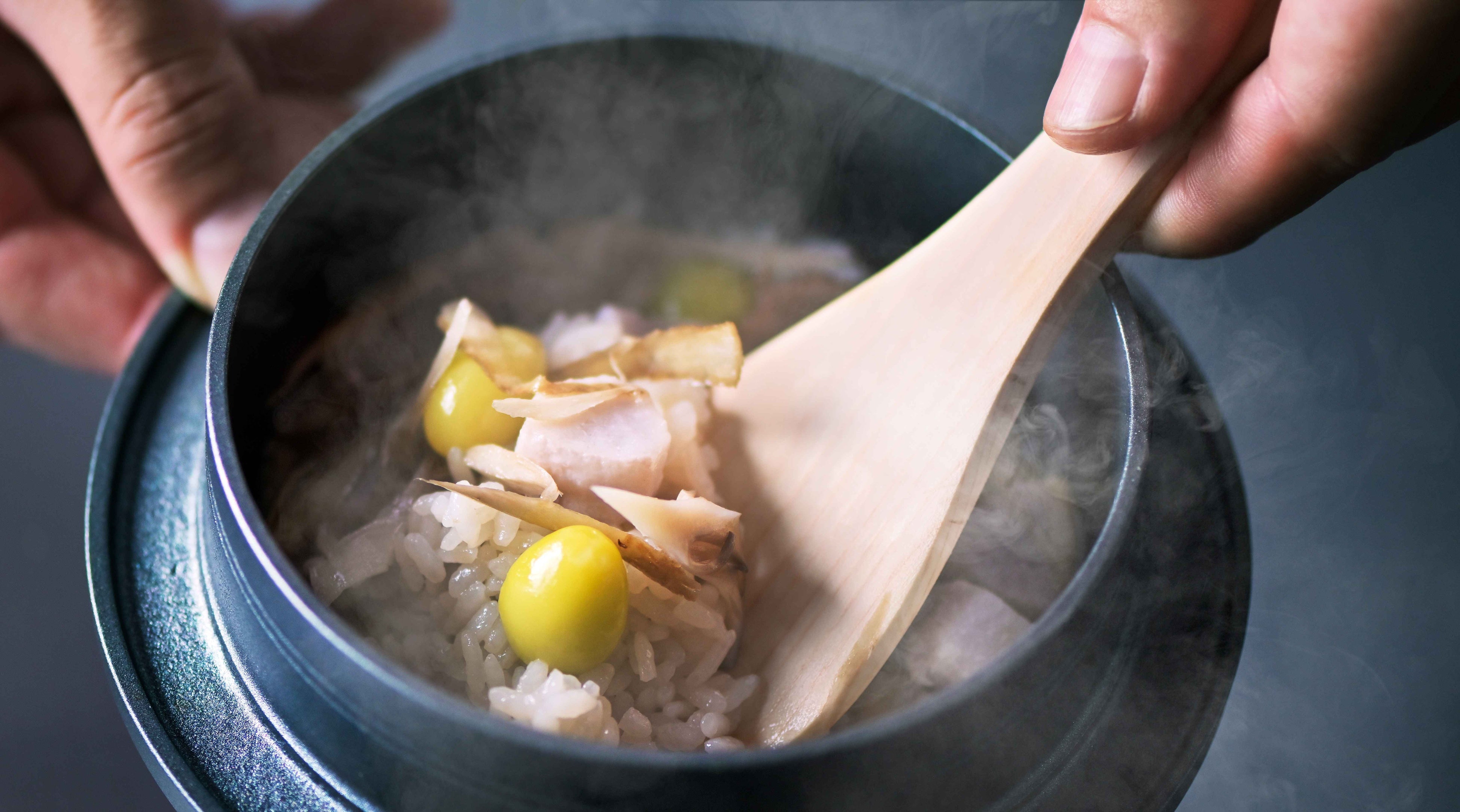 番ですが、羽釜を使った炊き込みご飯をご提供す