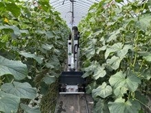 今回の試験では、鷹栖町で普及が進む養液栽培システムを用いた農業研修施設「あったかファーム」にて、AI搭載のキュウリ自動収穫ロボット Qを導入しました。