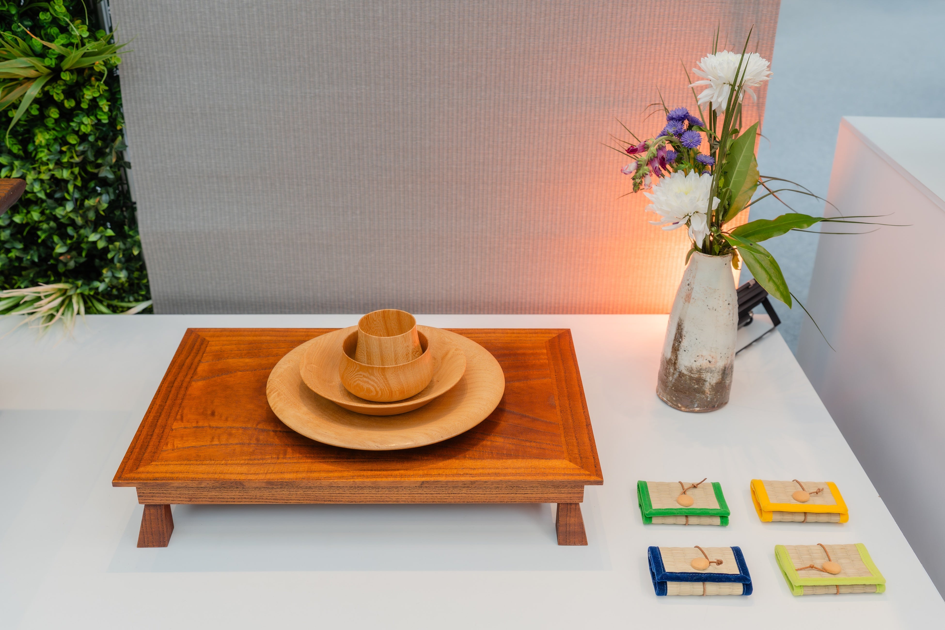 The installation presented the theme “The Serenity and Material Beauty of Japan”, reinterpreting traditional craftsmanship and natural materials from Wakayama through a modern design lens.