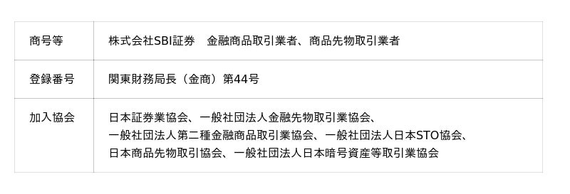 SBI証券で取り扱っている商品等へのご投資には、商品毎に所定の手数料や必要経費等をご負担いただく場合があります。また、各商品等は価格の変動等により損失が生じるおそれがあります(信用取引、先物・オプション取引、商品先物取引、外国為替保証金取引、取引所CFD(くりっく株365)、店頭CFD取引(SBI CFD)では差し入れた保証金・証拠金(元本)を上回る損失が生じるおそれがあります)。各商品等への投資に際してご負担いただく手数料等及びリスクは商品毎に異なりますので、詳細につきましては、SBI証券WEBサイトの当該商品等のページ、金融商品取引法等に係る表示又は契約締結前交付書面等をご確認ください。