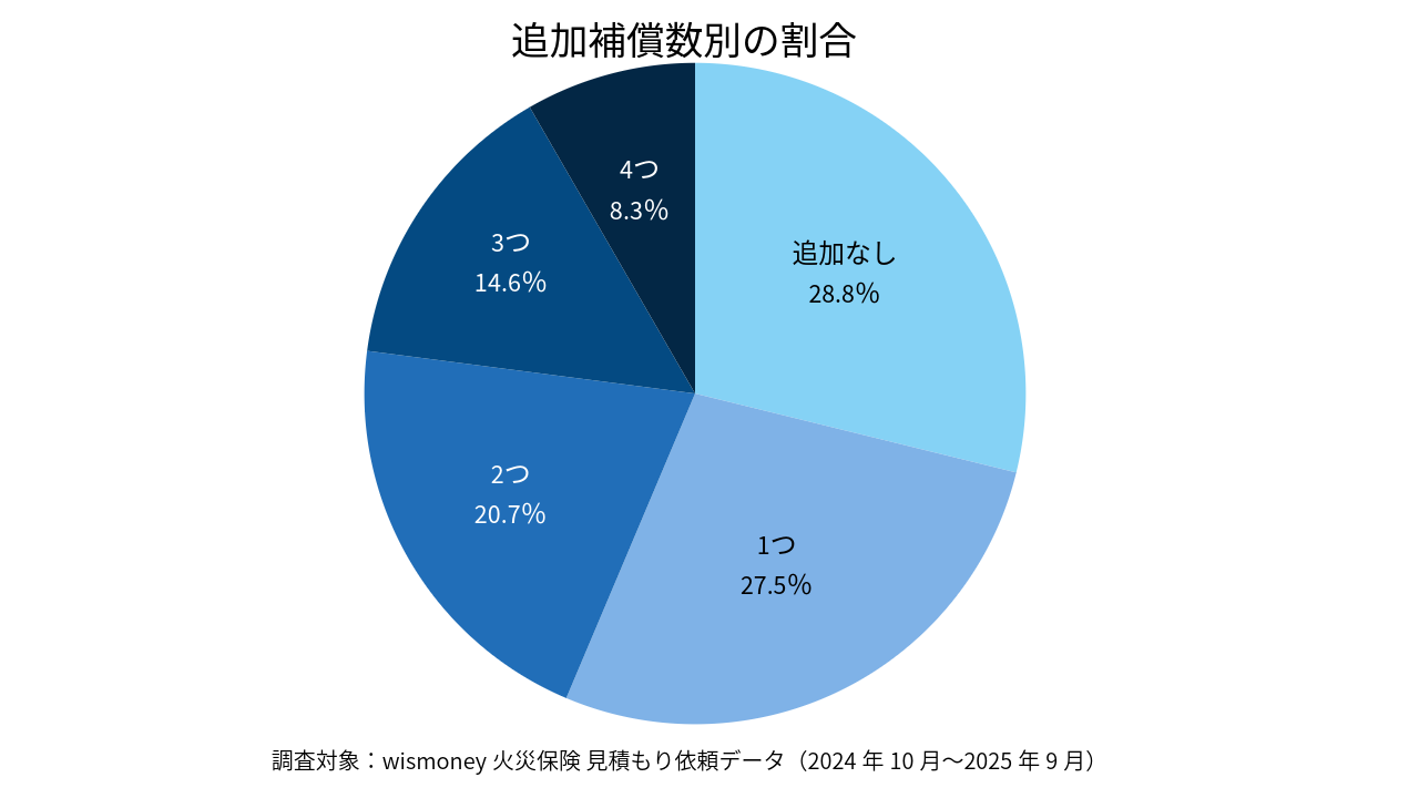 追加補償を希望しない方は全体の約3割にとどまり、2つ以上の補償を組み合わせて希望する方が4割を超えています。単一のリスクに備えるだけでなく、複数のリスクを想定して補償を選ぶ傾向が見られます。