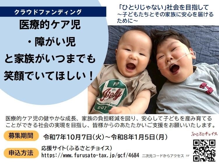 退院後の在宅生活に必要で役立つ情報を分かりやすくまとめた「医療的ケア児在宅生活サポートブック」の提供、医療的ケアや障がいへの理解促進など安心して暮らし続けることができるようなサポートを持続的に行っていけるよう、ふるさと納税型クラウドファンディング(ガバメントクラウドファンディング)を実施し、皆さまからのご支援を募ります。