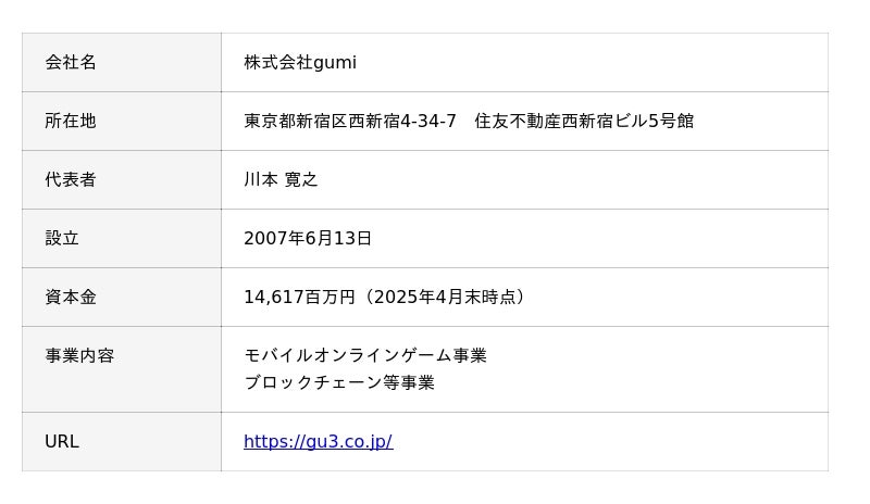 gumiは、「Wow the World! すべての人々に感動を」をMissionに掲げ、モバイルオンラインゲーム事業とブロックチェーン等事業の二つの事業を展開しています。モバイルオンラインゲーム事業では、『当社ゲームエンジン×IP』を軸とした収益性の高いタイトル開発を推進するとともに、開発受託にも注力しております。ブロックチェーン等事業では、ブロックチェーンゲーム等のコンテンツ開発、暗号資産を基盤にしたプラットフォーム構築、有力ブロックチェーンのノード運営、グローバルにおけるファンド投資等を行っております。