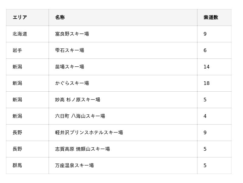 <国内スキー場>