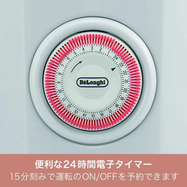 もうひとつの魅力が、15分単位で細かく設定できる24時間電子タイマーを搭載していること。「朝起きる30分前にON」「外出中はOFF」など、生活リズムにぴったり合わせて暖房をコントロールできます。