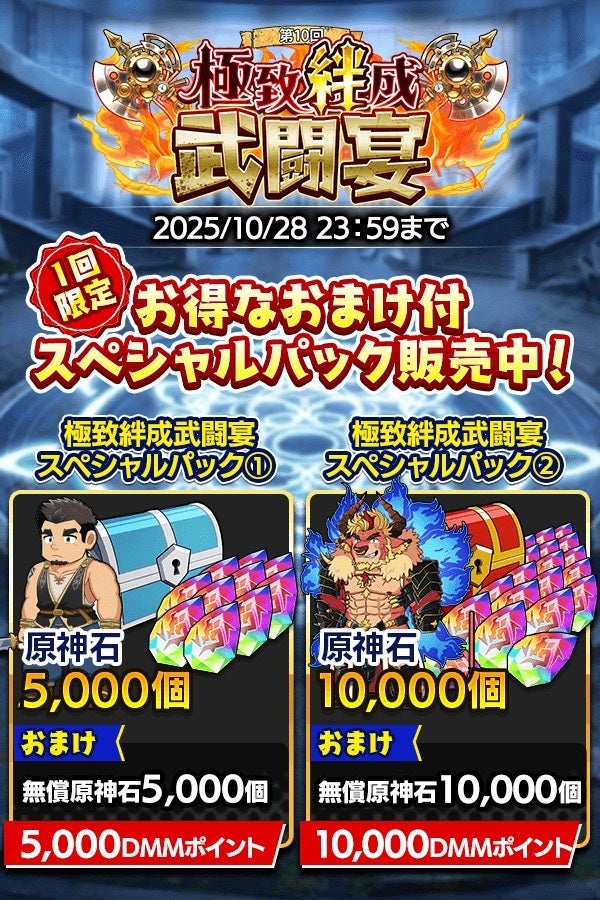 イベント期間中、原神石がおトクに購入できる「第10回極致絆成武闘宴スペシャルパック」が2種登場!