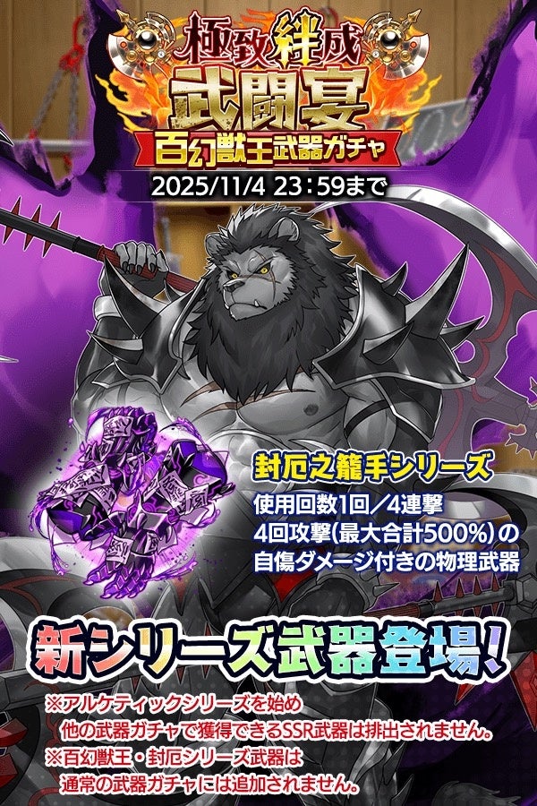 さらに『極致絆成武闘宴武器ガチャ』にも新たなシリーズ『封厄之籠手シリーズ』が追加されました!こちらもお見逃しなく!