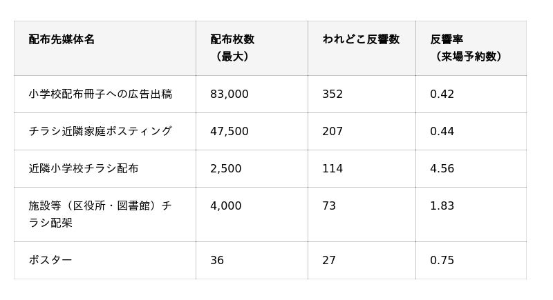 データ分析では、物理的な配布距離だけでなく、参加決定権を持つ保護者の「心理的距離」が来場行動に大きく影響していることも明らかになりました。教育的な安心感や信頼性の高い「学校経由」や「行政・公的機関経由」の情報は、保護者が「安心して子どもを参加させられる」と感じる判断材料となり、結果として高い反響率に結びついています。