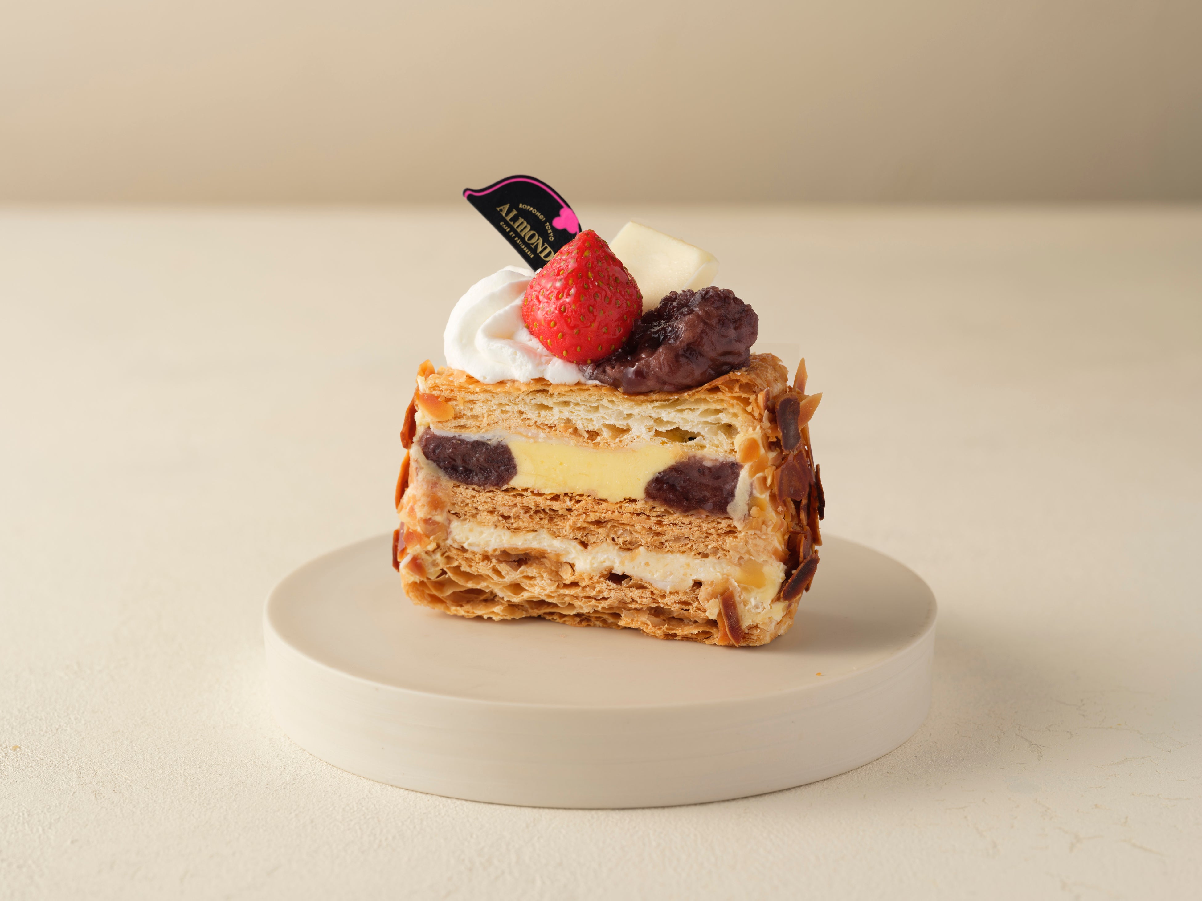 濃厚なあんバターに埋もれない生地のサクサク感と力強い香ばしさはさすがナポレオンパイ専門店!カスタードでよりスウィーティーに、いちごとアーモンドもナイスアシスト。