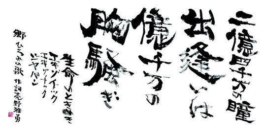 伸びやかで力強い線、見た者の魂に訴えかける書道作品を作りあげる“墨の魔術師”と称される書家・金田石城氏が、時代とともにパワフルに進化を続ける日本のトップシンガー郷ひろみ氏との「一郷一会展」を大丸福岡天神店で開催します。
