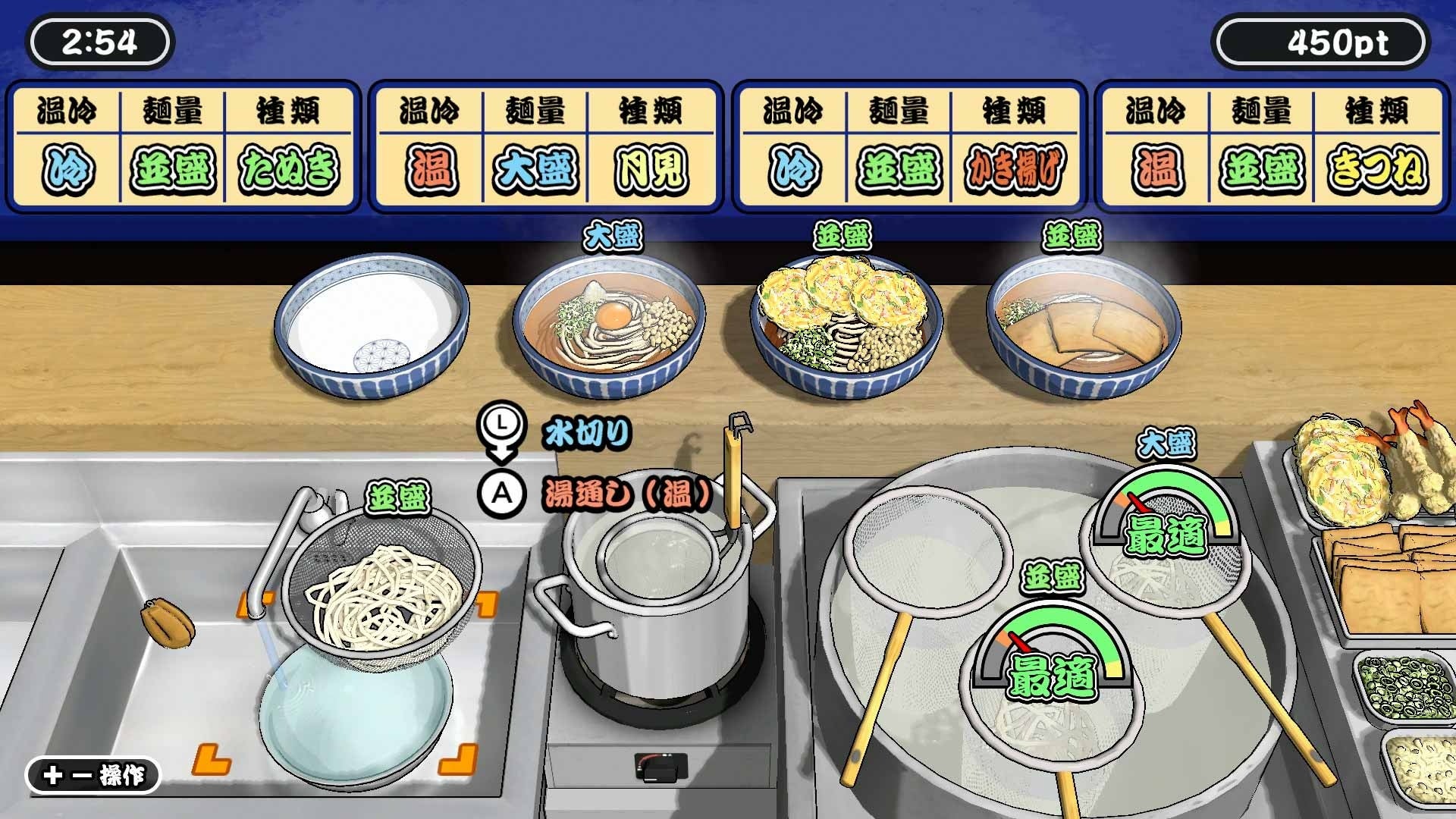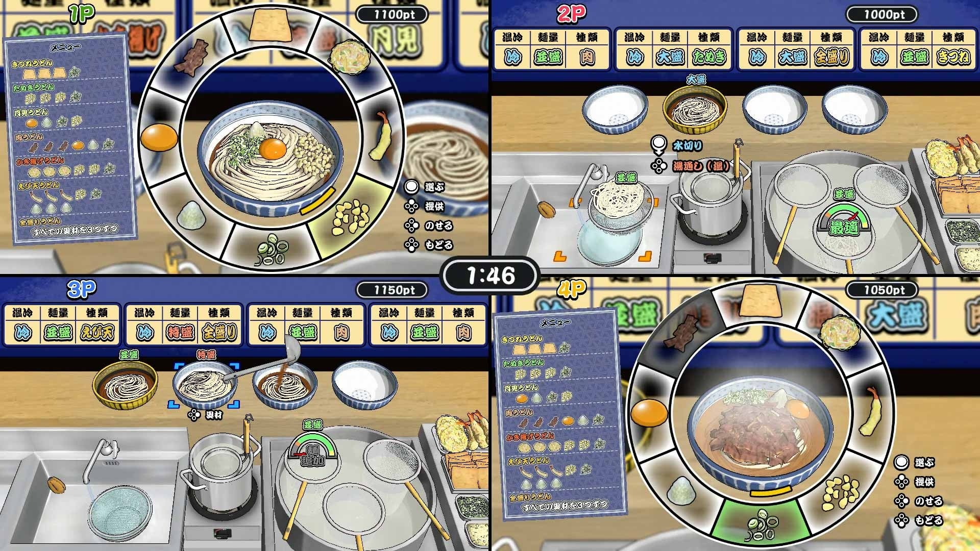制限時間内に、できるだけ多くのうどんを作って提供しよう!
