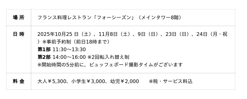 アオアヲ ナルト リゾート(徳島県鳴門市 総支配人:高橋裕二)は、2025年10月25日(土)、11月8日(土)、9日(日)、23日(日)、24日(月・祝)の5日間、10回限定でスイーツビュッフェ第三弾「実りの秋の収穫祭」を開催いたします。