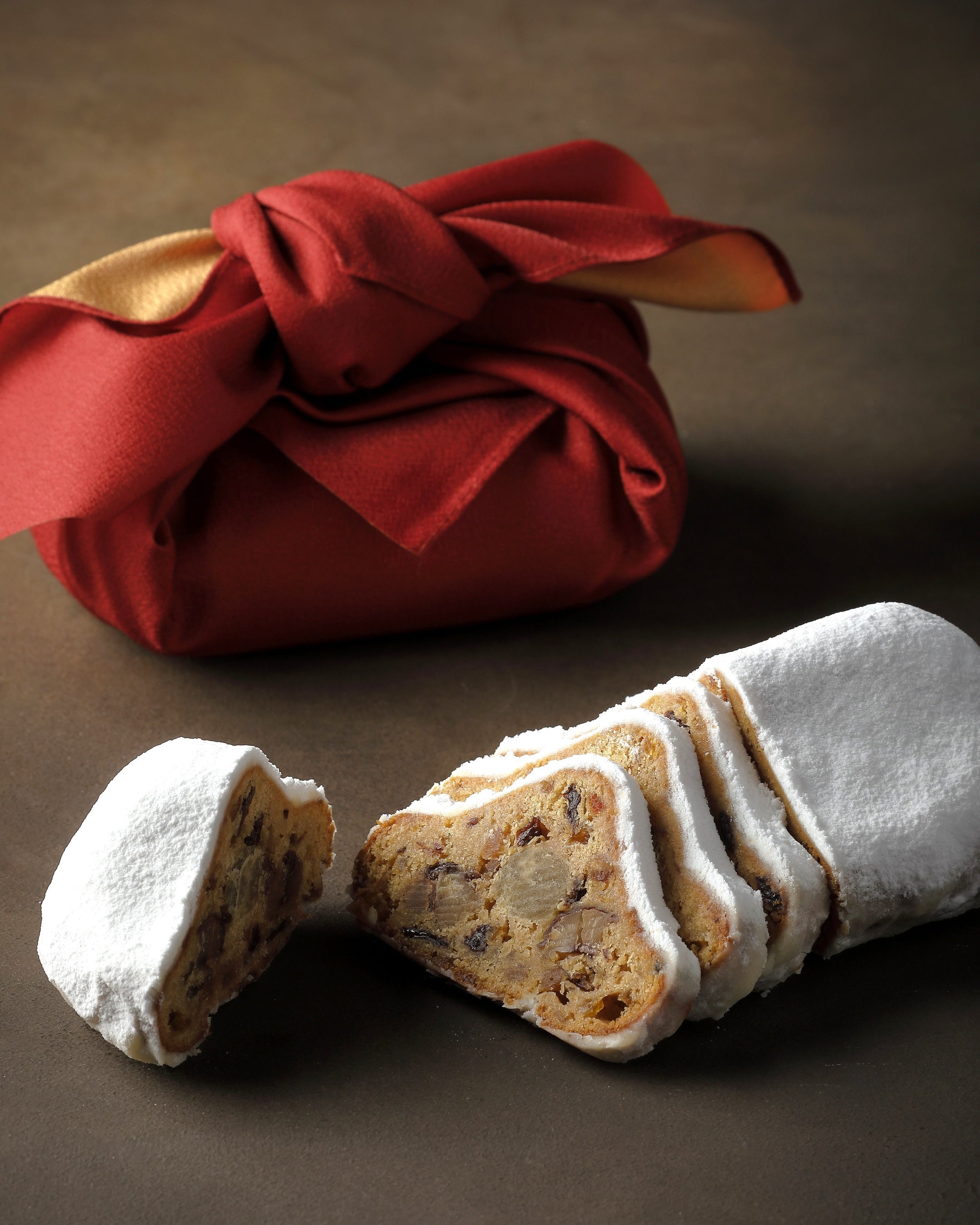 クラシックなドイツの伝統的な味わいに、最上級の和栗として名高い丹波栗を贅沢に使用し、和のエッセンスを加えた、エグゼクティブペストリーシェフ松尾浩幸のオリジナル「丹波栗のシュトーレン」。