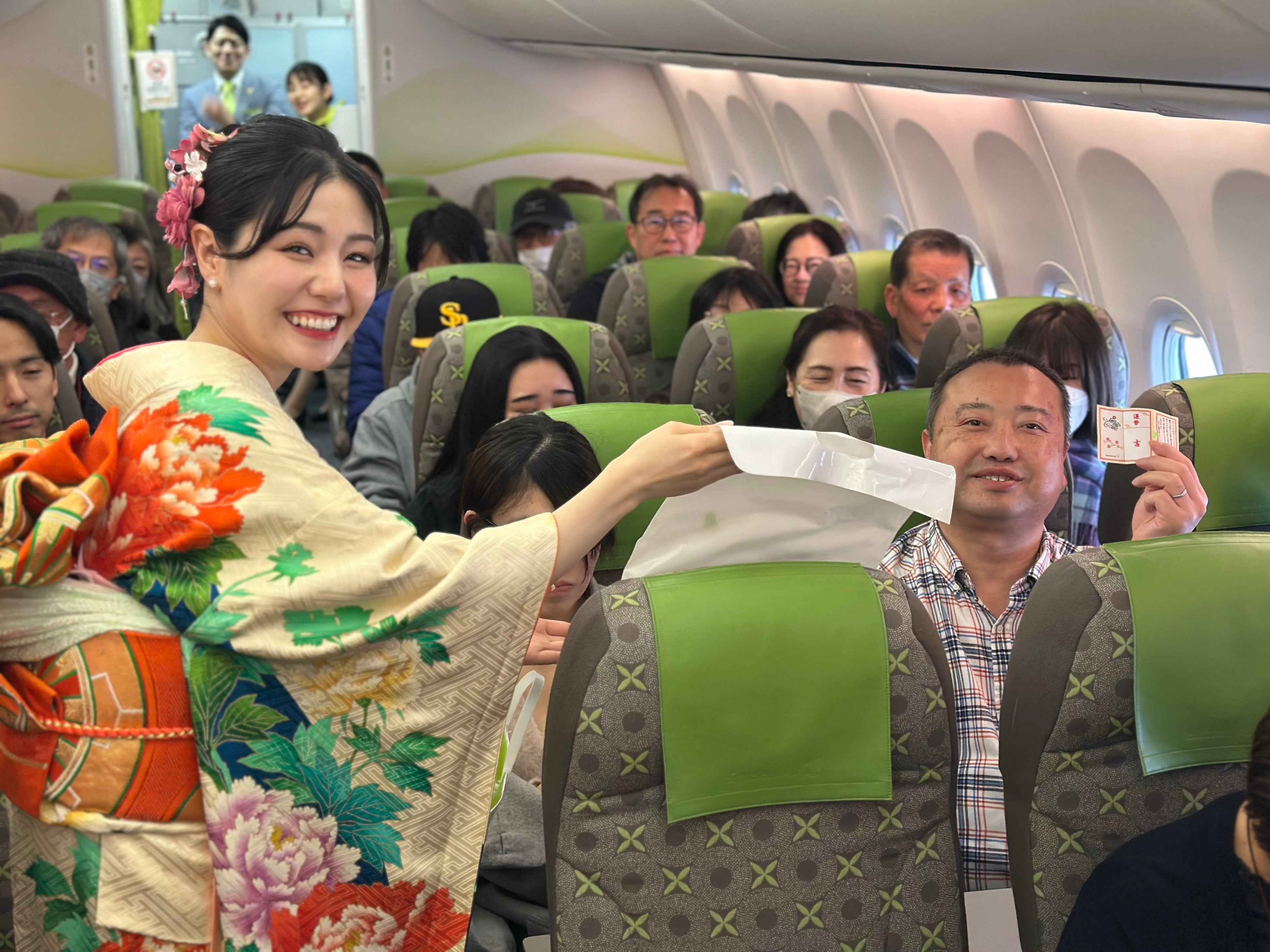 2026年の 『午年』 にちなみ、福を運ぶ象徴である 「馬」 をモチーフにした限定デザイン『初日の出 アクリルスタンド』 と、客室乗務員の発案商品で、厳選した良質な馬油(マーユ)が原料の 『【肌美和】 シードスマイルズ マーユクリーム~和~(3個入)』 をお土産として選定いたしました。そして本フライト限定・宮崎県の飫肥杉を使用した 『ソラシドエアロゴ入り 飫肥杉コースター』 は、天然無垢材の深い香りと、未来永劫へと続く幸せや健康・長寿などを願う、日本伝統的な5種類の縁起の良い柄が特徴です。これらの品々は新しい年の始まりを告げる“初日の出”のように、皆さまの未来を明るく照らし、幸福とご縁をお届けしたいという想いが込められています。