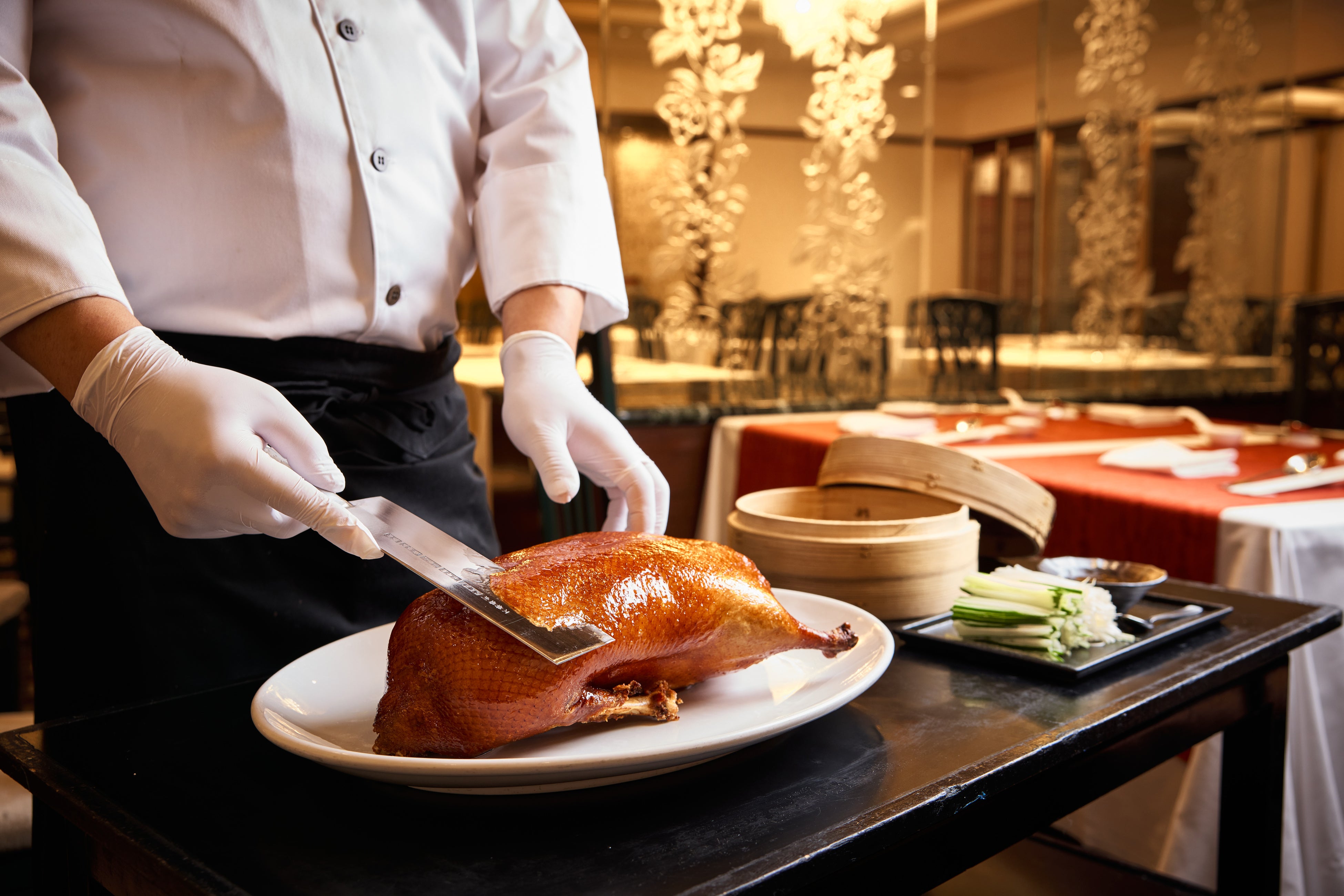 クリスマスのご褒美にふさわしい2つのクリスマスコースでは、ふかひれや鮑など厳選された食材を使用した、贅沢なフルコースをお楽しみいただけます。ランチタイム限定の「龍鳳コース」は、前菜の盛り合わせから、選べる3種のメイン料理まで、ひとつひとつ工夫を凝らした全7品をご提供します。ディナーも楽しめる「朱雀コース」では、黒毛和牛をリースに見立てた華やかな一皿など、シェフの技が随所に光る限定スペシャルコースをご用意します。また、12月20日(土)~12月25日(木)の6日間は、コース料理をご注文のお客様に、皮はパリッと身はジューシーな北京ダックをカービングサービスにてご提供します。華やかなクリスマスのひとときに、こだわりの食材と繊細な技術で仕上げる美食の数々をご堪能ください。