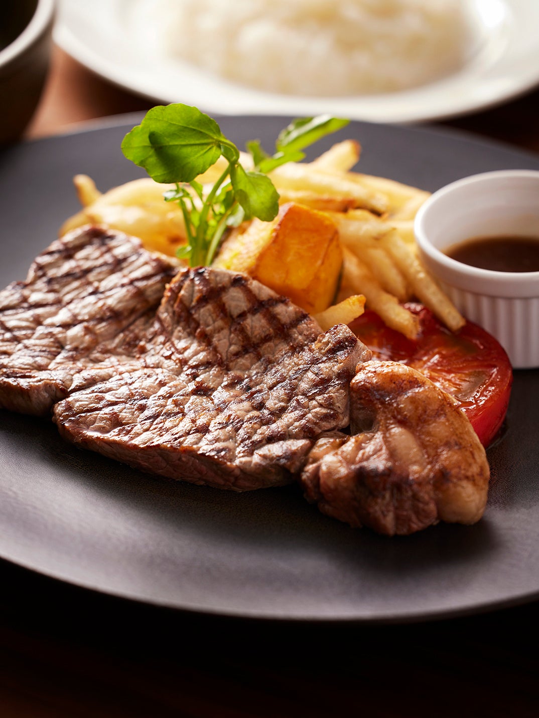 オーストラリア産サーロインステーキのグリルとBAY GRILLサラダセット ガーリックソース