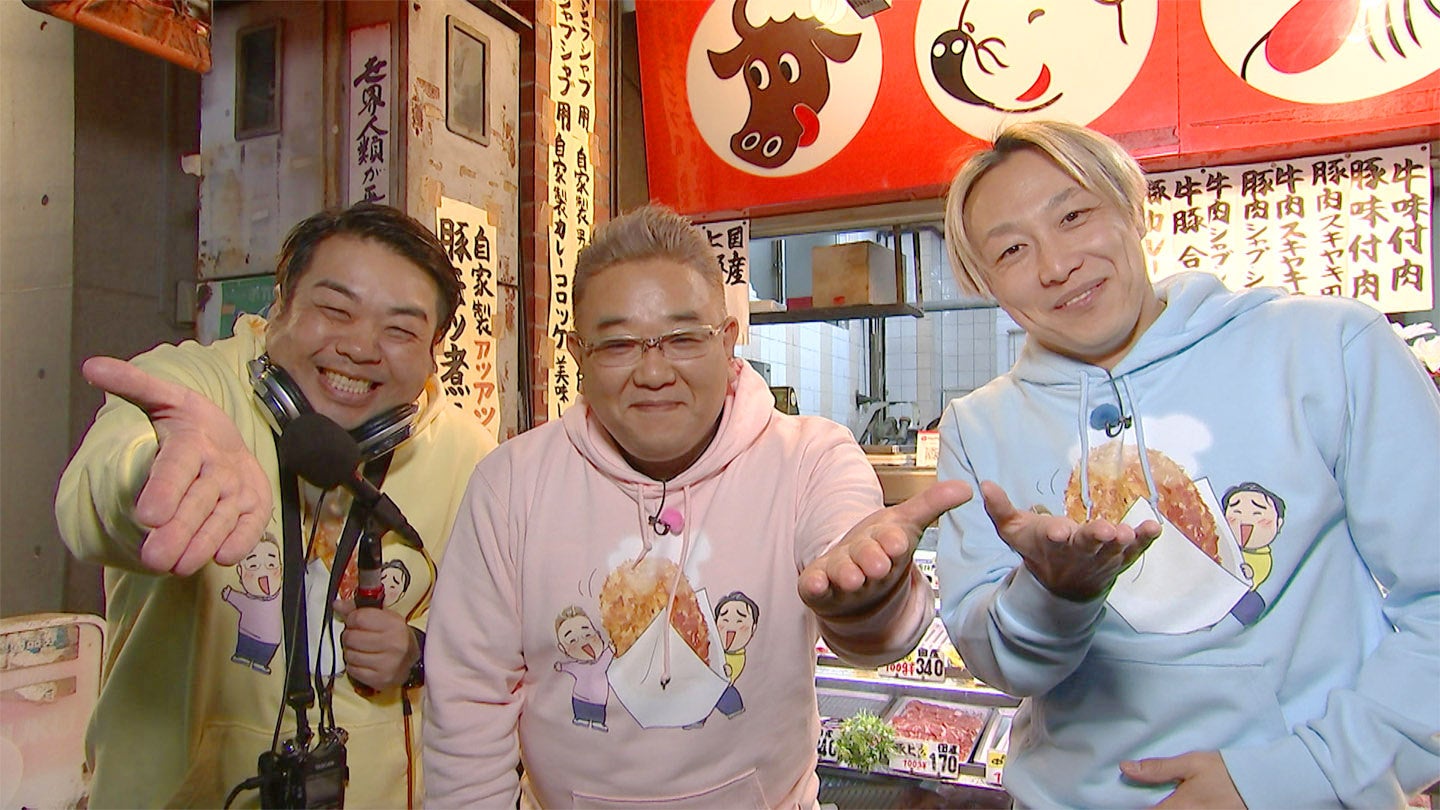 今回はコロッケ仲間に、なるおの相方ふぢわらを迎え、月島・佃の絶品コロッケをいただきま~す! 1軒目は佃の「肉のたかさご」。コロッケにメンチ、やき豚と、いきなりアクセル全開の伊達ちゃん。その後、月島に到着した一行は、おたけ(ジャングルポケット)が店主のもんじゃ屋「竹の子」へ。お店に出勤していたのは…?最後に訪れたのは「能登 本店」。常連さんもよく食べるというコロッケもんじゃをまずは注文。 お腹いっぱい、笑いもいっぱいの1時間!