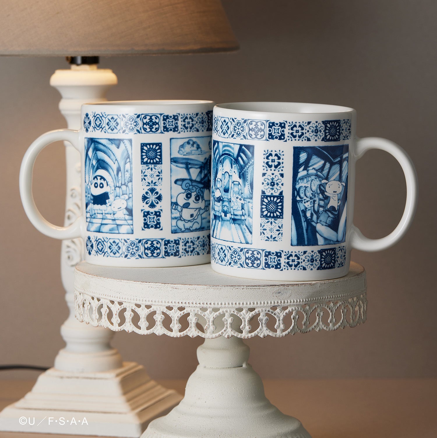『クレヨンしんちゃん飛行機缶』の発売を記念し、缶のイラストをデザインした特別なマグカップを羽田空港 JAL PLAZA FLIGHT SHOPにて300個限定で販売いたします。缶の側面のタイルデザインをメインにしたマグカップです。