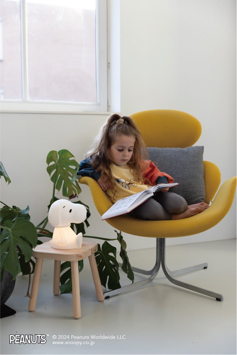 Mr Mariaの洗練されたシンプルかつスタイリッシュなデザインで、Snoopyのもつ魅力を最大限に表現。全体をマットなシリコーン素材にすることで、クールでありながら柔らかさや温かみをもたらし、どんな空間に置いてみてもなじみがよく、お子さまから大人まで幅広く愛されています。