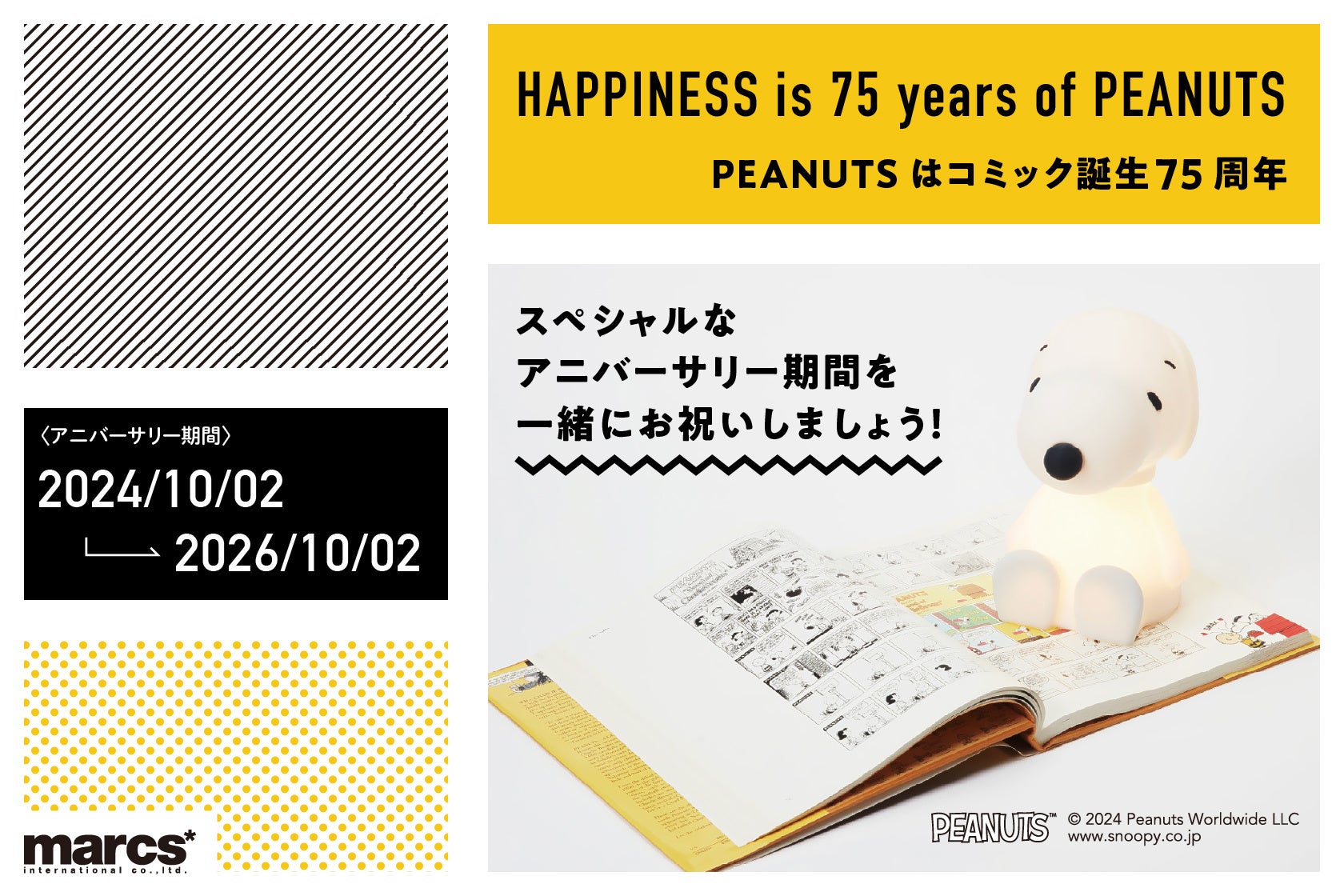 しあわせは...75年。1950年、チャーリー・ブラウンやスヌーピーをはじめとするピーナッツ・ギャングが初めて世の中に紹介されました。以来75年、PEANUTSは世界的な現象となり、受賞歴のあるアニメーション・コンテンツ、ステージショーやライブ体験、注目のコラボレーション、リテールプログラムを世界中で展開しています。芸術家、音楽家、哲学者、そしてファンは、70年以上にわたってチャールズ・シュルツ氏の創作にインスピレーションを受けてきました。そして、人間の経験をとても美しく、かつシンプルに表してくれる、この愛すべきキャラクターたちに終わりはありません。