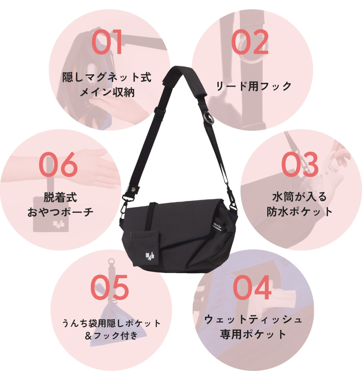 愛犬とのお散歩には、ペットボトル、おやつ、うんち袋、スマホ…と持ち物が多く、「バッグがごちゃつく」・「使いたいものがすぐ取り出せない」・「衛生面が気になる」などの悩みがつきものです。