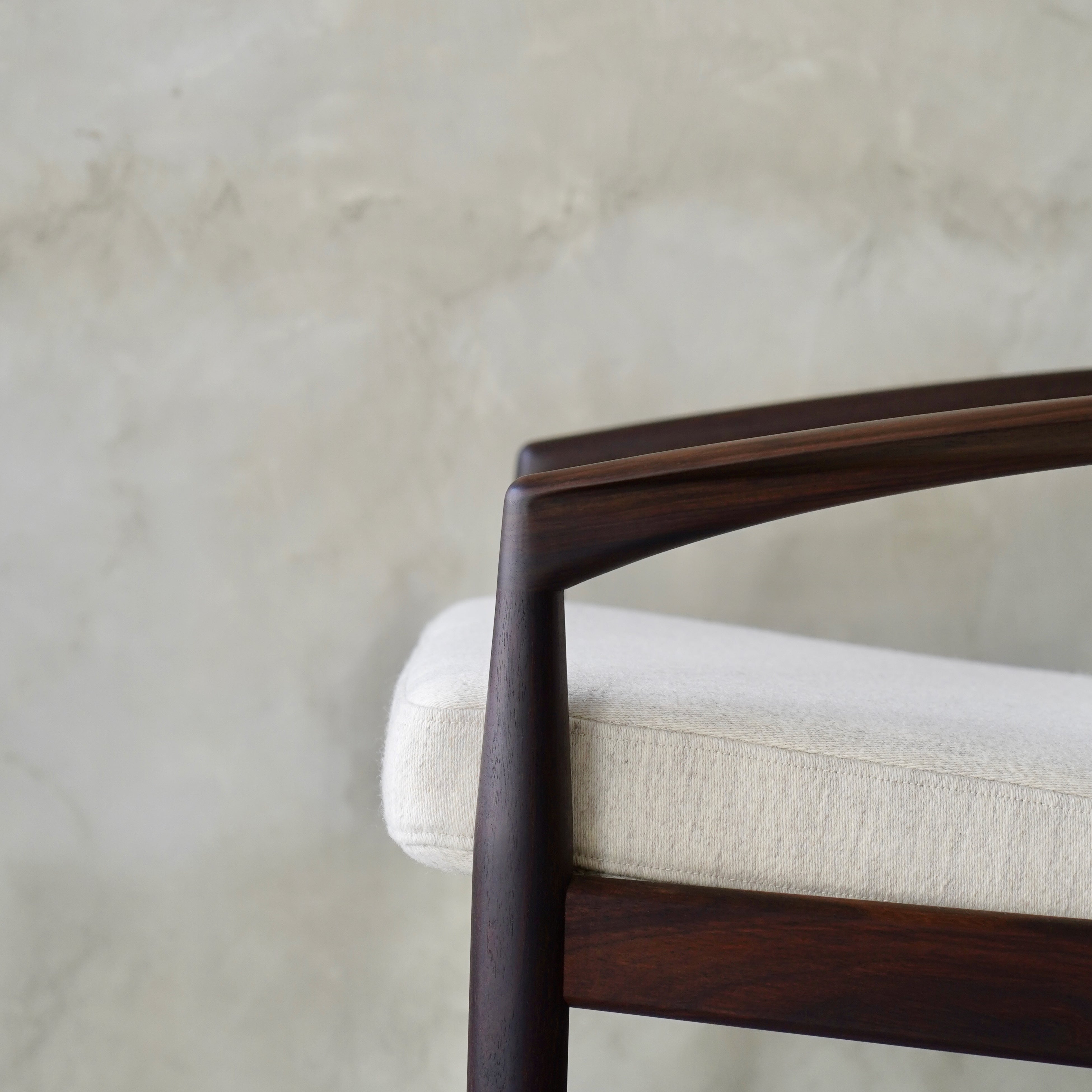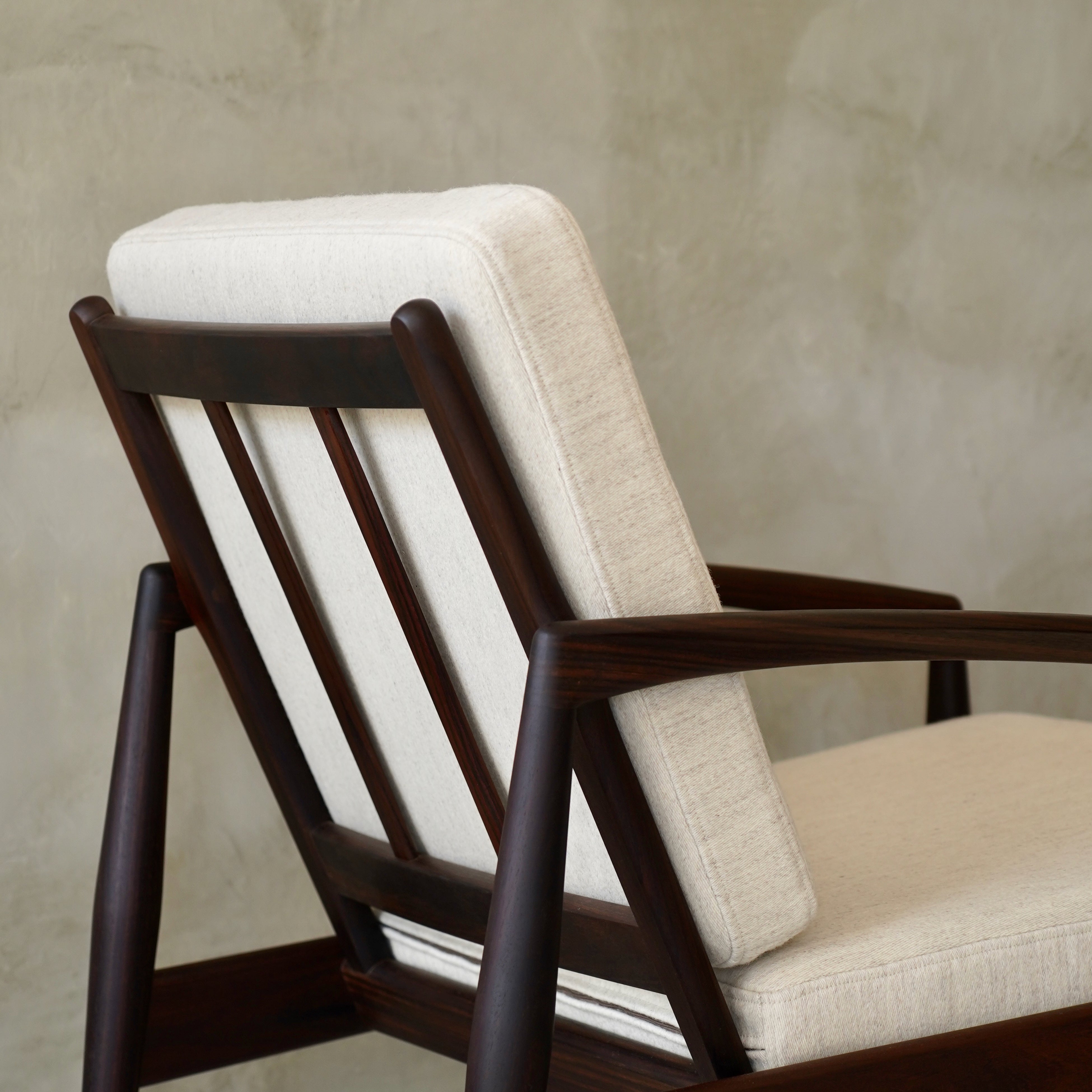 この別注モデルは弊社が運営するインテリアショップ「SEVEN STYLE」の開店15周年を記念した特別仕様として宮崎椅子製作所へ依頼したことで実現しました。別注モデルは、宮崎椅子製作所の通常ラインナップには無い樹種である「ローズウッド材」「チーク材」「ウェンジ材」を採用し、張地は宮崎椅子製作所の数ある中からSEVEN STYLEが厳選した張地を2種類のみご用意しています。