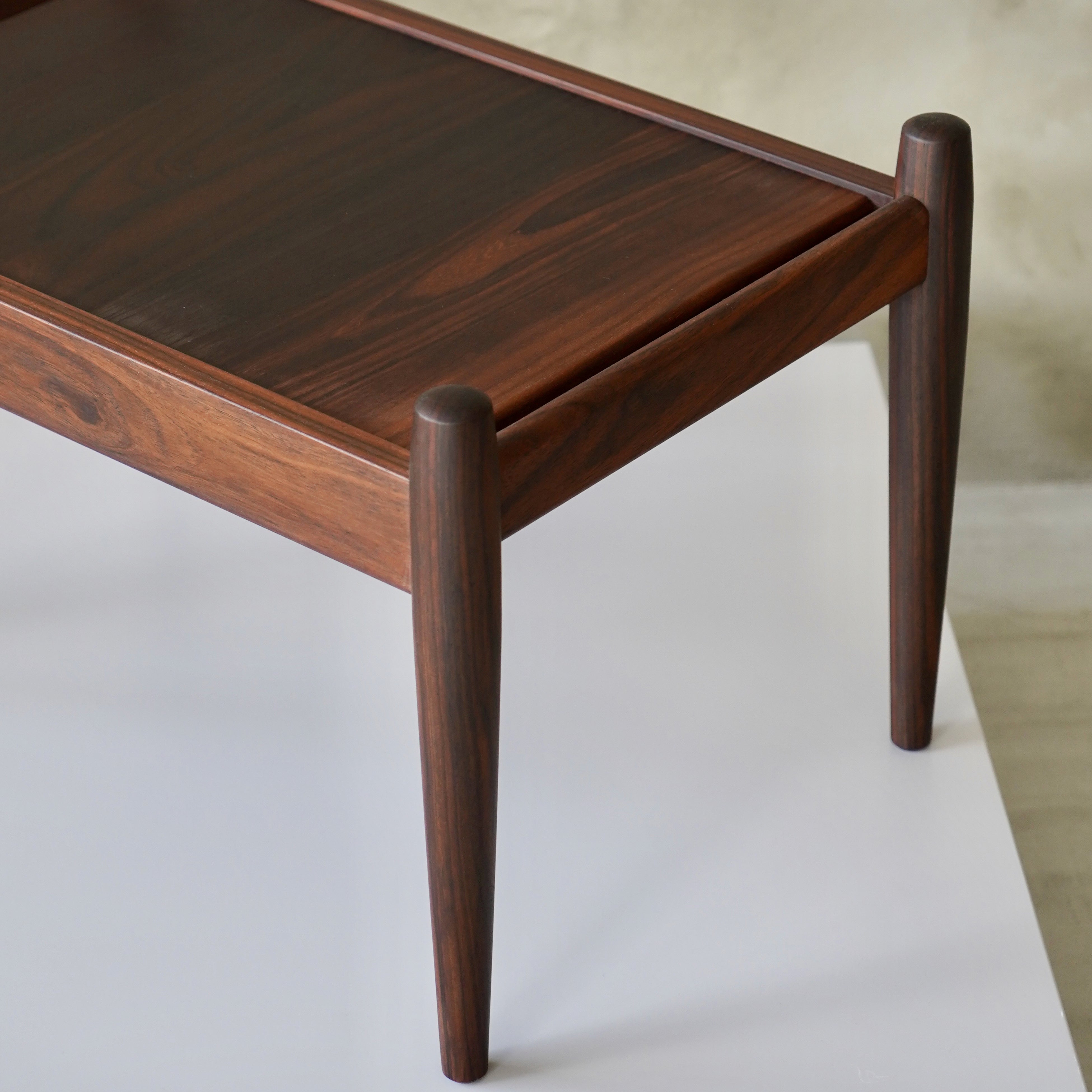 ローズウッド材は硬質で耐久性・安定性に優れており、ヴィンテージ家具に見られるように古くから高級家具に使われる木材として知られ、世界的な高級材であるチーク材よりも高級材として取引されています。