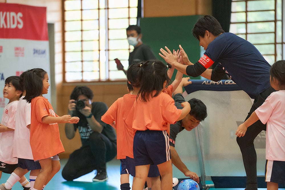 さらに、「地域によって、勝負にこだわる、楽しさにこだわるなど、子どもや親御さんの熱量や個性は様々だと感じている。石川の皆さんは子どもたちが必死にボールを追いかけてサッカーを楽しんでいるだけではなく、イベントのお手伝いをしてくれた高校生もとても協力的で、一緒に盛り上げてくれていたのが嬉しかった。子どもたちが帰るときには、アーチを作ってお見送りをしたりと、優しさやチームワークのある地域性を肌で感じた。温かく迎えてくれた石川の皆さんに対して、自分ができることを今後もしていきたい。」と、ボール一つでたくさんの人が繋がることができるサッカーそのものの魅力を発信するとともに、今後も継続して震災復興に向けた活動を継続していく意気込みを語り、本イベントを締め括りました。