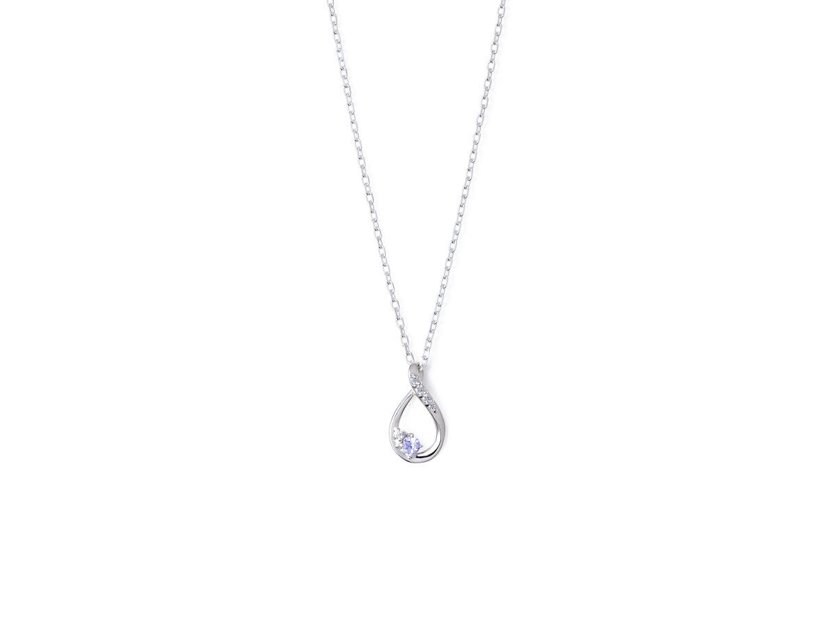 光を受け、きらめくしずくを表現したティアドロップモチーフのネックレス。