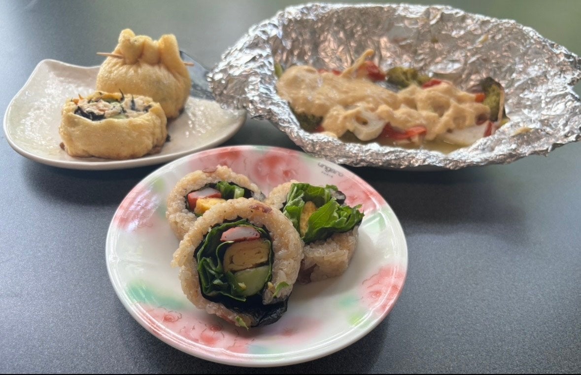 米づくりの実習を通して実感した食べ物への感謝を胸に、斬新な発想で郷土料理をリクリエイト。米どころである長岡市の「醬油おこわ」を華やかなロール寿司にするなど「懐かしいけれど新しい」レシピを目指しました。