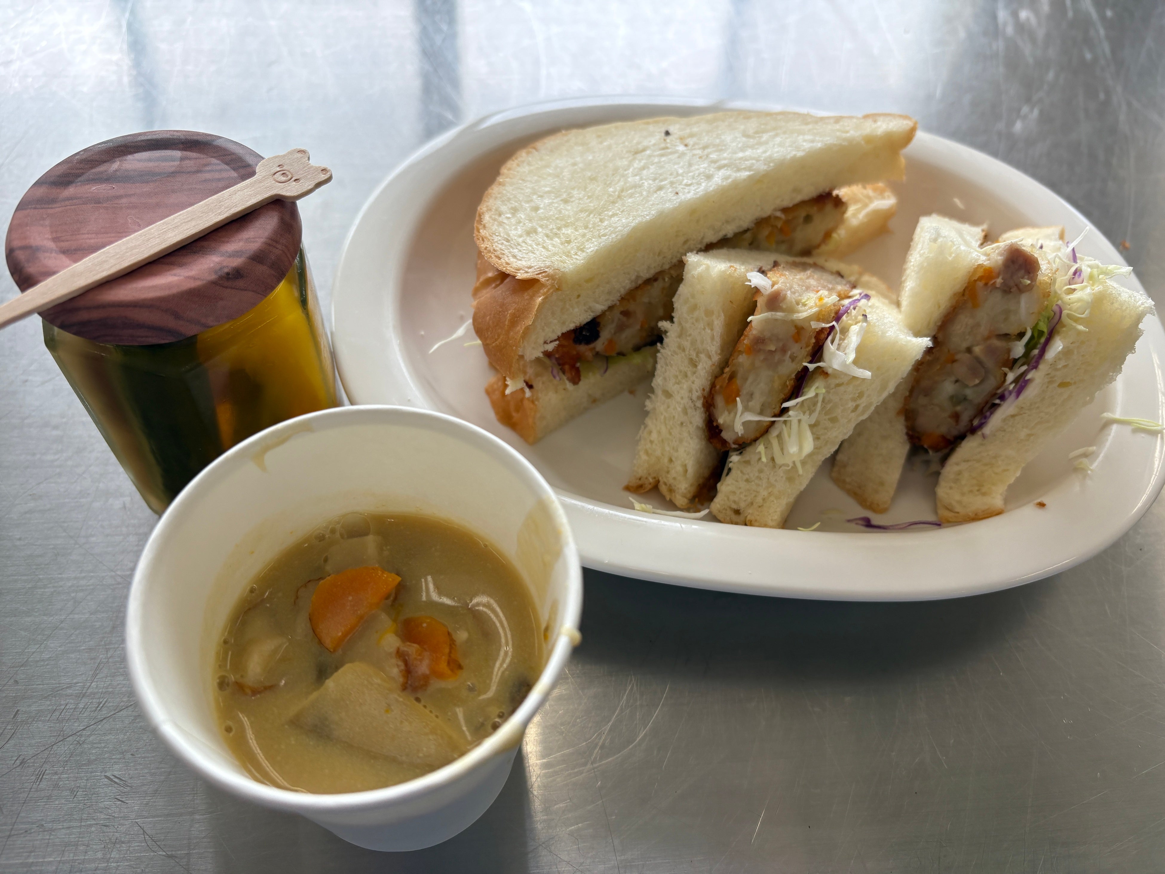 地域のレストランや道の駅での商品化を目指して農業科の食品専攻生がアレンジ郷土料理を考案。給食で食べた「味噌ころばかし」や「ざぶ汁」を幅広い世代に親しまれるようなレシピにアレンジしました。