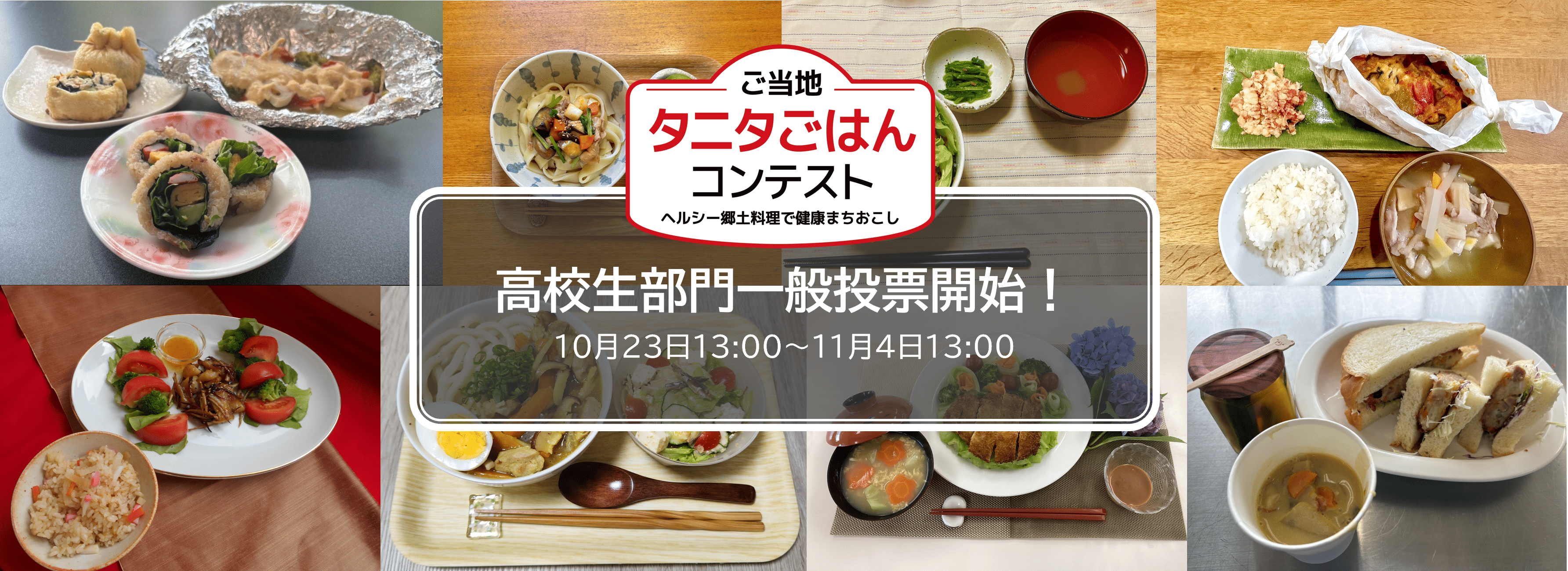 株式会社タニタ(本社:東京都板橋区、代表取締役社長:谷田千里)などが主催する「ご当地タニタごはんコンテスト―郷土料理でまちおこし―」において、今回新設された高校生部門の一般投票を10月23日13:00より開始しますのでお知らせします。